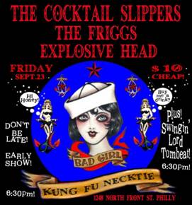 The Friggs will join the Cocktail Slippers for the upcoming Philly performance, along with local rock band Explosive Head and DJ Swingin’ Lord Tombeat. Show time is 6:30 p.m. All three acts will light up the stage with their explosive, in-your-face stage presence and leave fans craving more.