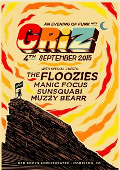 NEW YORK, NY - February 17, 2015 - Detroit's own DJ/Producer/Musician, GRiZ (aka Grant Kwiecinski), is excited to announce his return to Morrison, CO for a performance at the iconic Red Rocks Amphitheatre with special guests The Floozies, Manic Focus, SunSquabi and Muzzy Bearr. Tickets to the show, which will take place on Friday, September 4th, will go on sale this Friday, February 20th at 10am MT, and a limited amount of pre-sale tickets are available now. PRESS HERE<http://smarturl.it/GR_RedRocks> to purchase!