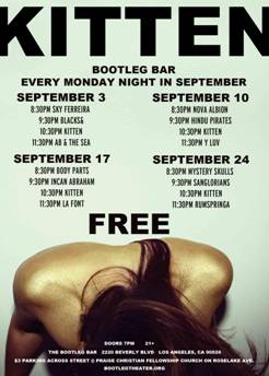 KITTEN * Bootleg Bar * Monday, Sept. 3rd + Every Monday Night In September