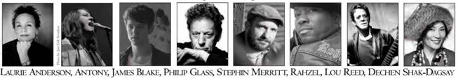 Antony and Stephin Merritt will join Philip Glass, Lou Reed, James Blake, Laurie Anderson, Rahzel and Dechen Shak-Dagsay on February 13th, 2012, at Carnegie Hall