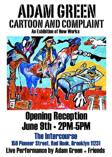 Please join us for the Opening Reception of Adam Green's solo exhibition, Cartoon And Complaint at Dustin Yellin's The Intercourse<http://theintercourse.org/>. The reception will feature a collection of paintings and a special musical performance by Adam and friends!