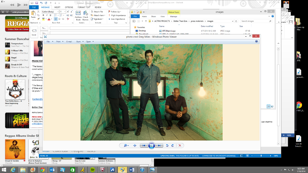 [cid:image006.jpg at 01CFA4F3.8B4BC2C0]Better Than Ezra, known for their hits "Good," "Desperately Wanting," "Juicy," and selling out venues for nearly 20 years, will perform a private show on Wednesday, July 23rd at The Oval in Stuyvesant Town for residents. The rock trio will release their long awaited eighth studio album All Together Now out September 9, 2014 via The End Records. The lead single "Crazy Lucky" is currently #37 on the Top 40 Hot AC Charts. PRESS HERE<https://www.youtube.com/watch?v=RmzXTRQdHME> to listen to "Crazy Lucky." For more information visit www.betterthanezra.com<http://www.betterthanezra.com>. (ashleyl at pressherepublicity.com<mailto:ashleyl at pressherepublicity.com>)