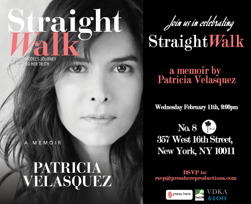 Come celebrate and have a drink with us tonight at No. 8 in honor of Latina supermodel, actress, businesswoman and philanthropist Patricia Velasquez's first book Straight Walk: A Supermodel's Journey To Finding Her Truth (out NOW via Post Hill Press).