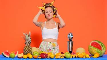 "The video for 'Human Contact' is another colorful clip from the singer-songwriter, who this time smashes a croquet club and curls her hair with yellow bananas" - Billboard.com