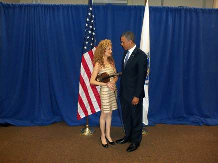 Miri Ben-Ari (in Herve Leger) and President Barack Obama