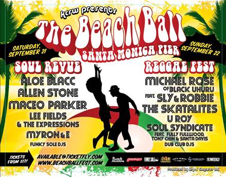 The Beach Ball Soul Revue mixes young upstarts of the genre Aloe Blacc and Allen Stone with classic old school practitioners Maceo Parker and Lee Fields. The Beach Ball Reggae Fest sees the historic reunion of Michael Rose with Black Uhuru's original legendary rhythm section Sly & Robbie. It will also feature a set by the Skatalites, as well as a rare performance by revered Jamaican vocalist U Roy fronting the island's premiere backing band Soul Syndicate - featuring original members Fully Fullwood, Santa Davis and Tony Chin.