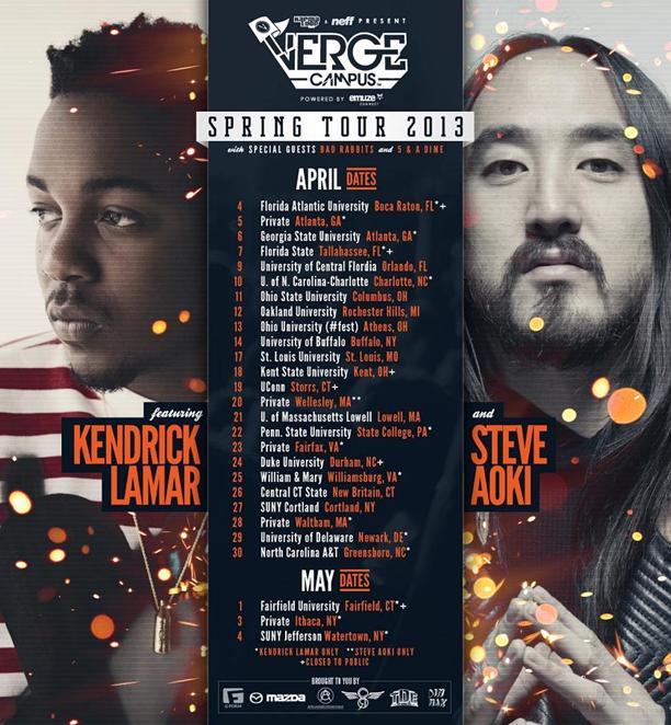 KENDRICK LAMAR and STEVE AOKI Headline Karmaloop's Verge Campus 2013 Spring Tour