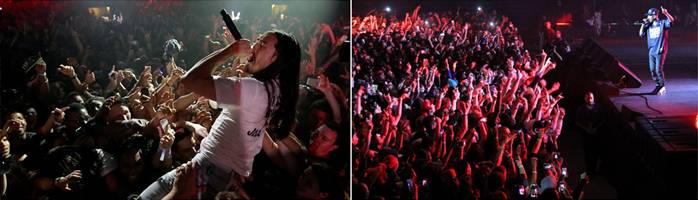 "Smoke, sweat and a sea of thousands filled University of Buffalo's Alumni Arena...the night served as a massive crescendo, with each performance adding to the unbearable energy. As the night progressed, the crowd grew and fans filled the entire floor and the stands to enjoy this stop on Karmaloop and eMuze's Verge Campus Tour." - The Spectrum (University of Buffalo)