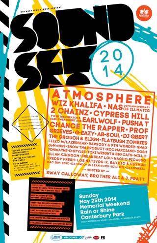 The festival, which is brought to you by Rhymesayers and Rose Presents, will be taking place on Sunday, May 25th at Canterbury Park in Shakopee, MN and is the official Midwest kick-off to summer, with nine hours of the best hip-hop music all in one day. Soundset 2014 will also feature performances by Wiz Khalifa, NAS (20th Anniversary of Illmatic), 2 Chainz, Cypress Hill and more!