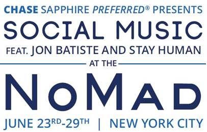 NEW YORK NY, MAY 27, 2015—Musician, humanitarian, educator & bandleader Jon Batiste, along with restaurateur Will Guidara of Eleven Madison Park and The NoMad Hotel, has announced the launch of a curated ‘Social Music’ residency, which will take place at New York City’s The NoMad Hotel this June. Presented by Chase Sapphire Preferred®, Social Music at the NoMad is a week-long celebration of music, artistry and food that will kick off Tuesday, June 23rd with several transformative performances featuring Jon and his band Stay Human as well as special guests. Each day will offer a different, unique gathering in one of the hotel’s spaces (see additional details below) and also a Social Music Mentoring Program (SMMP). Maybach Icons of Luxury, the German based luxury boutique, will be involved in the charity component of SMMP. Food for the performances will be by Chef Daniel Humm and Chef James Kent, with cocktails by Leo Robitschek.