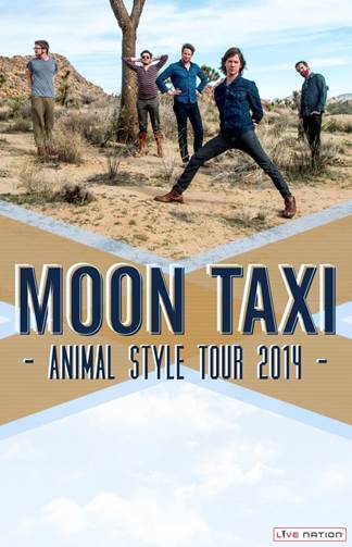 The band is supporting their acclaimed album Mountains Beaches Cities, which has earned praise from NPR, Esquire.com, InterviewMagazine.com, Relix, American Songwriter, and many more. Captivating a much wider audience these days - as PasteMagazine.com states, "Moon Taxi has had another landmark year, appearing on bigger and bigger stages ..." - the band has garnered recent debut appearances on the Late Show with David Letterman, CONAN, WNYC Soundcheck and USA Today's Studio A. Their last single "The New Black" was included in a few TV spots, including BMW's latest national TV ad campaign, which launched during the Sochi 2014Olympics - PRESS HERE<https://www.youtube.com/watch?v=cjmbJmbIMtY> to watch the commercial.